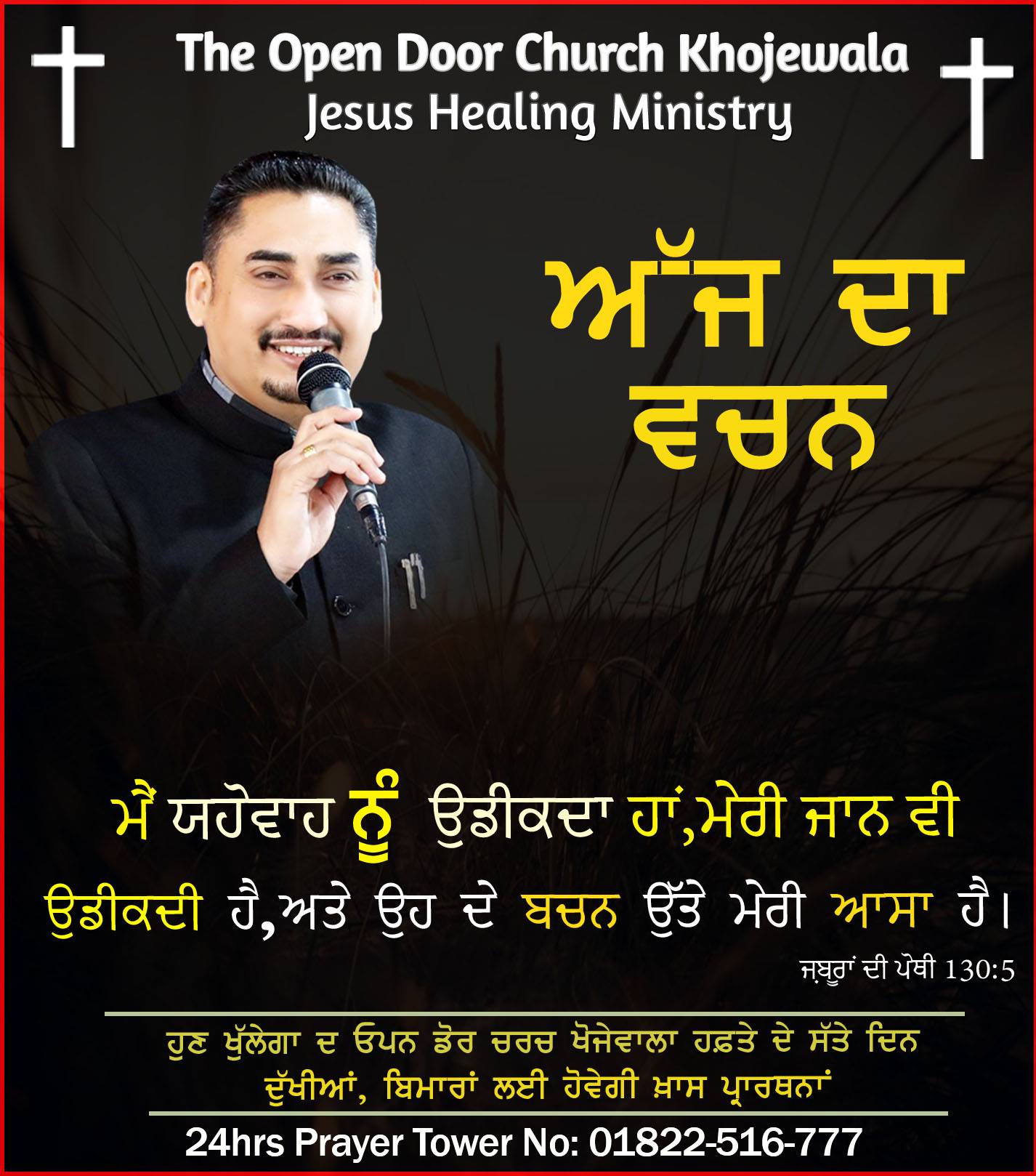 The Open Door Church, Khojewala, located in Kapurthala district of Punjab, India, traces its origins to the late 1980s. The ministry activities that later led to the establishment of the church were initiated in 1989 by Bishop Dr. Sant Harbhajan Singh, a native of Khojewala. During this period, Christian congregations in rural Punjab were relatively limited, and the outreach activities began through regular religious discourses and gatherings in the village.